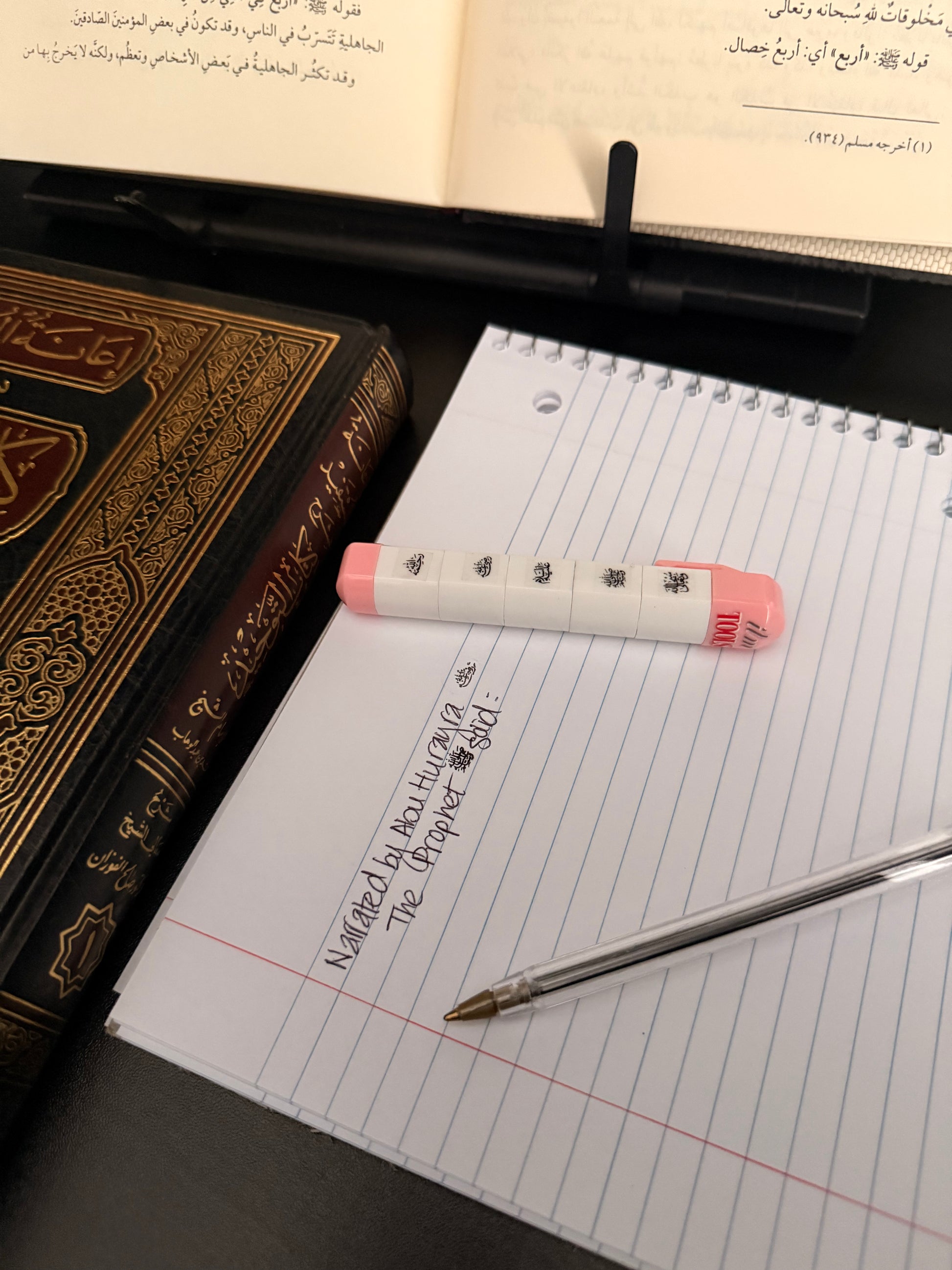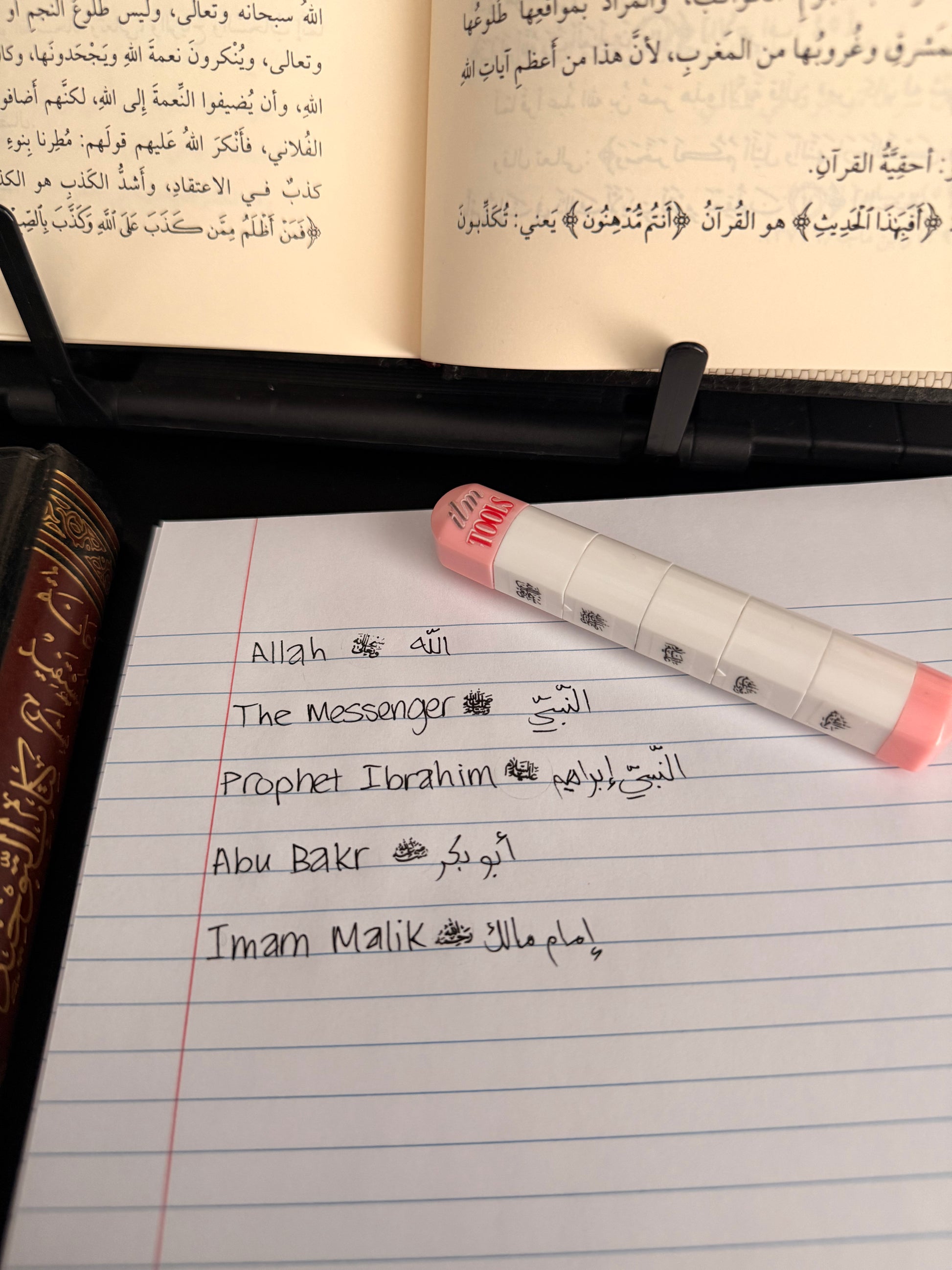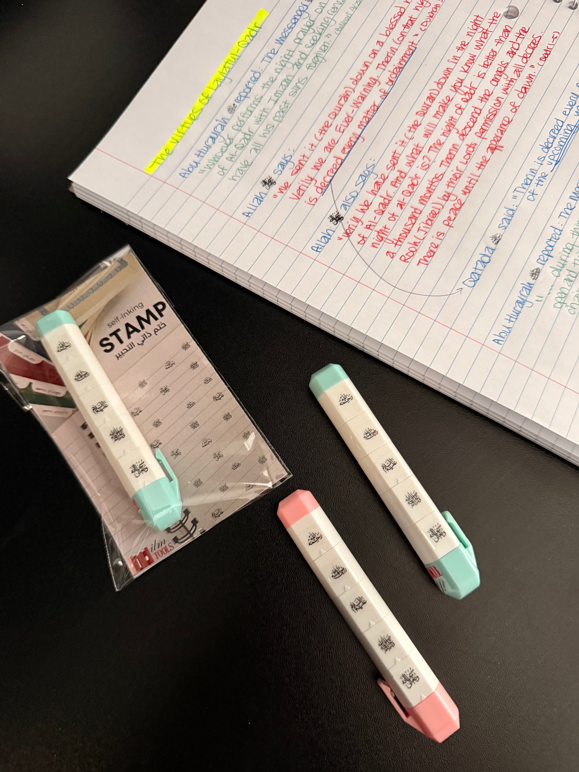 the first ever 5-in-1 tālib al-'ilm stamp is the newest innovative addition to our stamp collection. A convenient ilmTOOL designed to simplify your note-taking while honouring the most important honourifics: