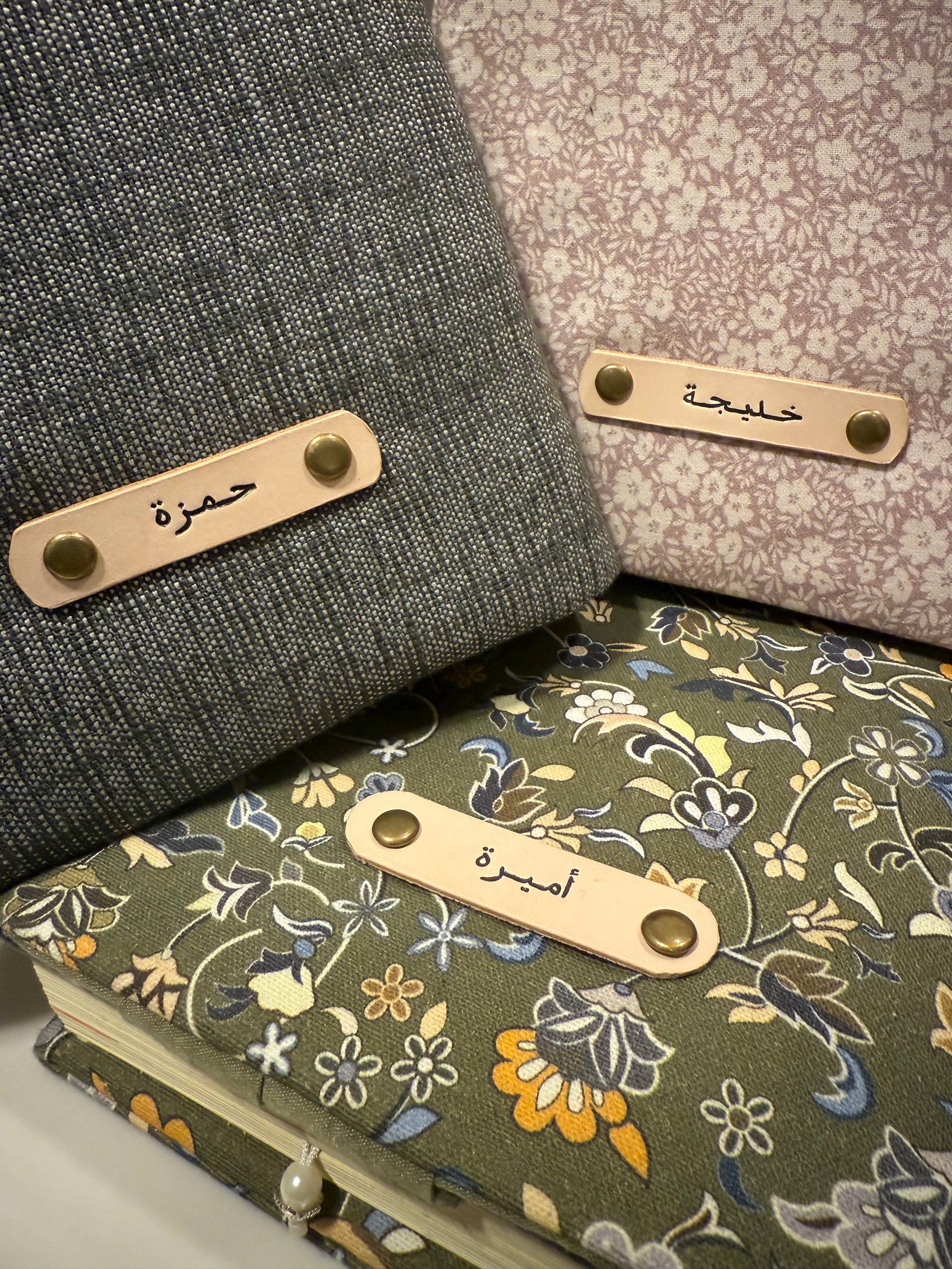Our NEW name tags are a customizable way to personalize your Qurān cover for you and your loved ones. Made of 100% genuine leather, names are beautifully embossed in either English or Arabic text.