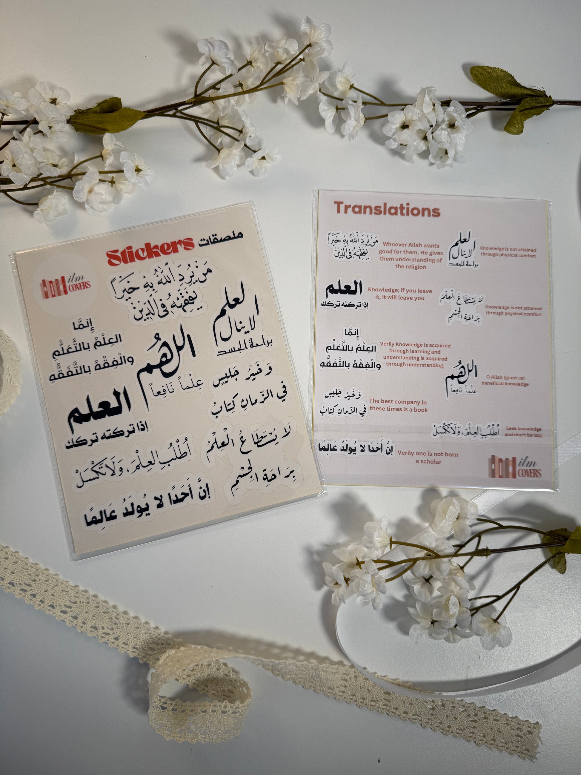 our 4 sticker sheets include 2 Qurān themed sheets and 2 Talab al-'Ilm themed sheets and also include translations for easy referencing!
